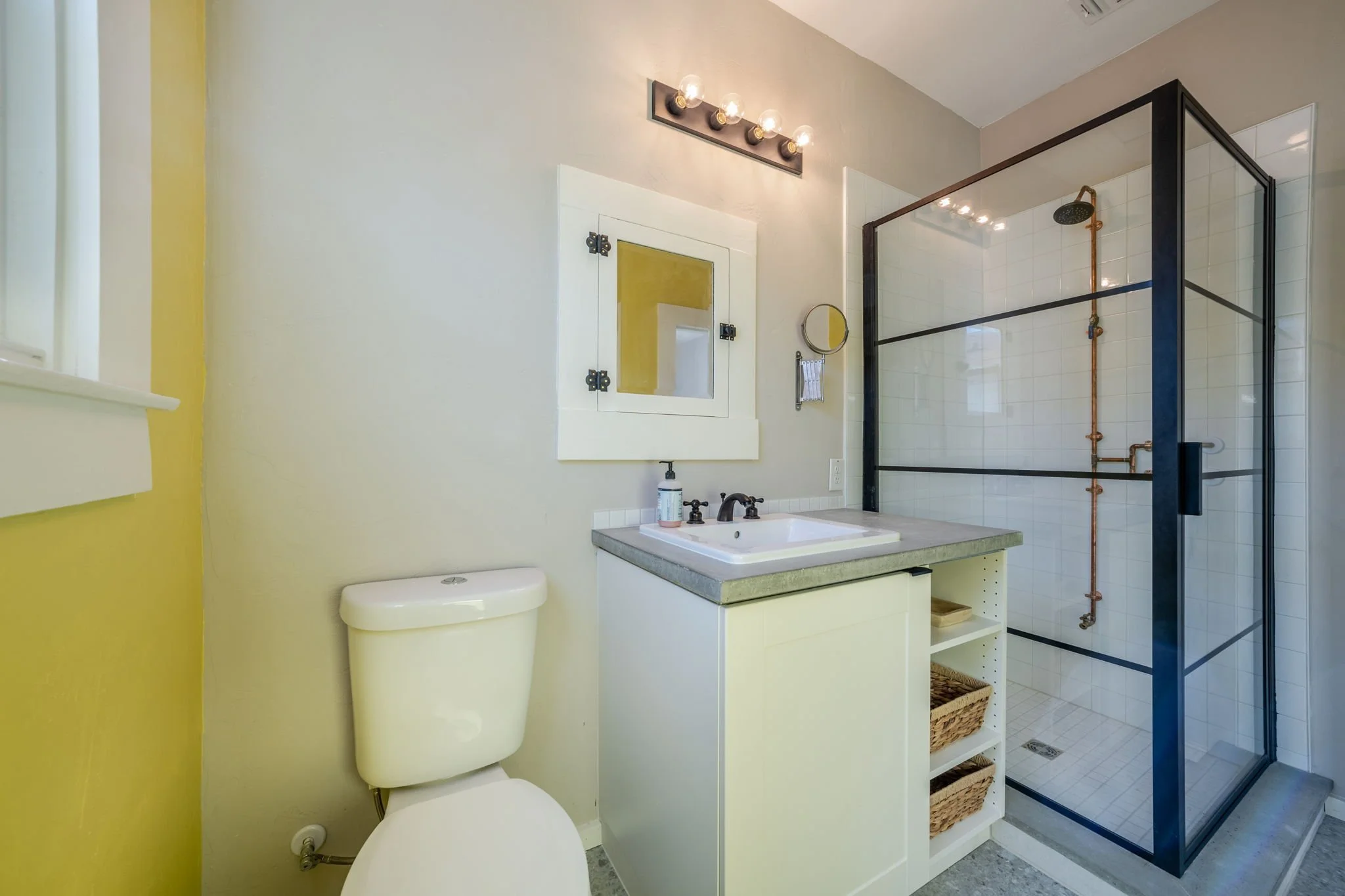 This 90+ year old House had a fair share of challenges like a shifty foundation and drywood termites (the kind you need a circus tent and many thousands of dollars to treat). But with completely new systems and the original details saved it was totally worth it. We decided to keep the structural shiplap wall sheathing exposed in areas to reveal some of the history of this great old house. New cabinets and counter tops through out blend well with the original hardware and details. As usual, the house’s character and vibe dictated the restoration and we greatly enjoyed seeing the house come back to life.